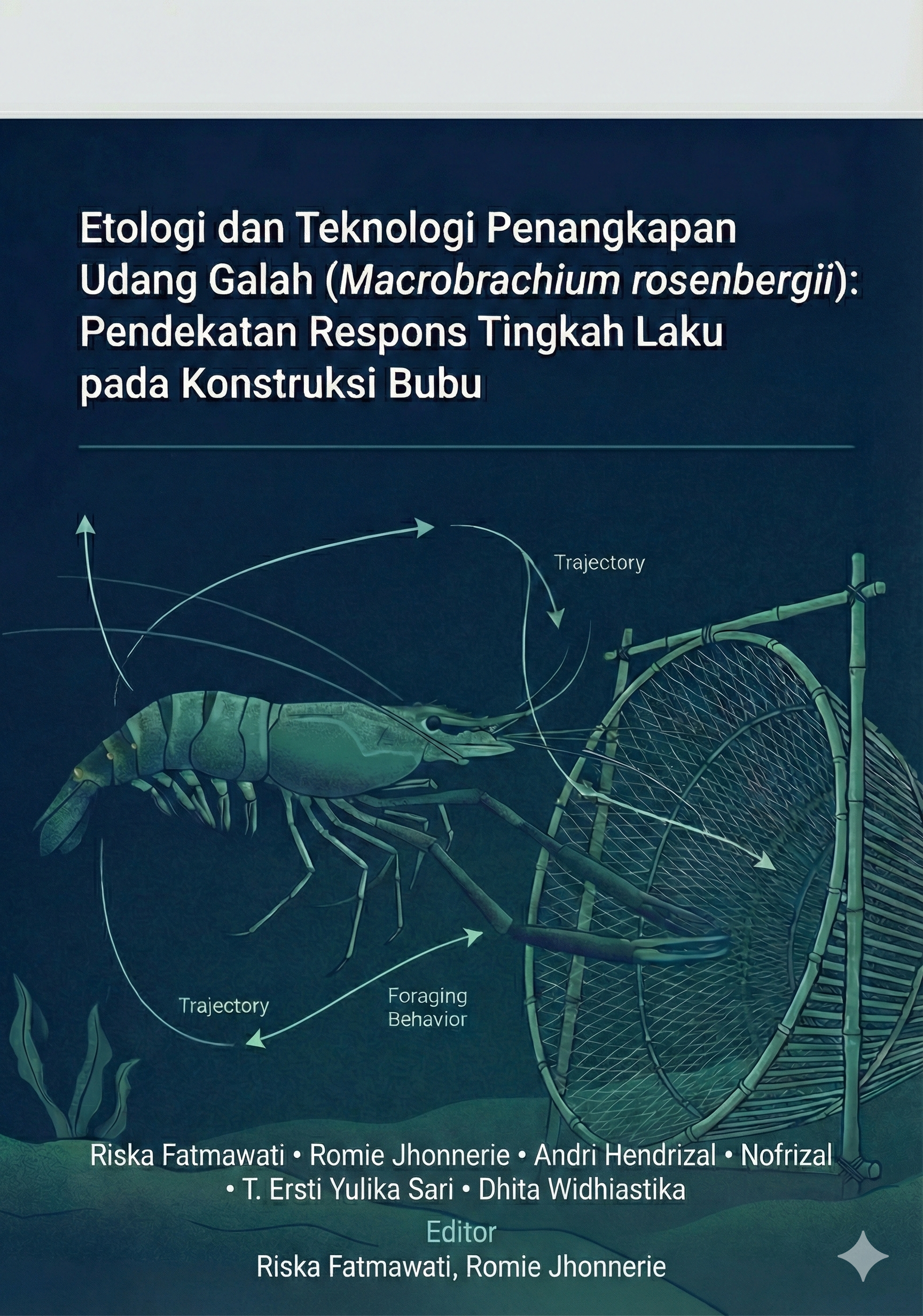 Secara sistematis, buku ini mengintegrasikan kajian bio-ekologi, struktur populasi, sistem sensorik, dan morfometrik udang galah dengan analisis teknis berbagai desain bubu (payung, lipat, dan gerugu). Melalui data empiris hasil pengamatan lapangan, visualisasi lintasan renang, heatmap zona konsentrasi, serta analisis waktu respons, pembaca diajak memahami bahwa keberhasilan tangkap tidak semata ditentukan oleh umpan, melainkan oleh kemampuan desain alat dalam memfasilitasi fase perilaku kunci mulai dari pendekatan, pencarian pintu masuk, hingga retensi. Buku ini menunjukkan bahwa kegagalan alat tangkap sering kali merupakan kegagalan komunikasi antara geometri perangkap dan sistem sensorik udang, bukan keterbatasan sumber daya itu sendiri.